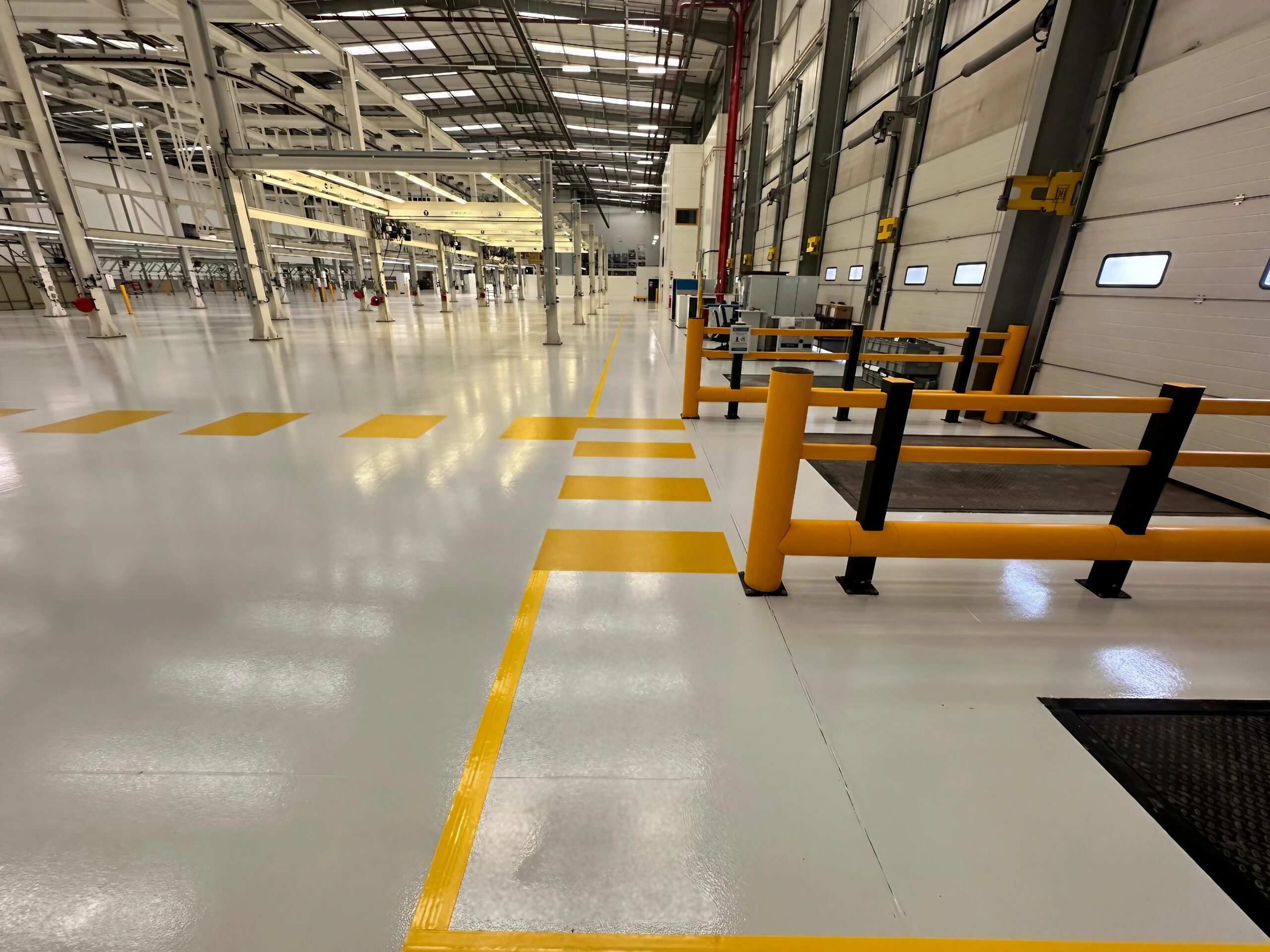 Health and safety are a major part of the workplace nowadays, and the resin flooring industry is at the forefront of this, providing epoxy, polyurethane and polyaspartic flooring systems that can prevent slips and falls and provide designated gangways and signage to ensure pedestrian and vehicle separation. With many of our customers requiring varying grades of non-slip industrial flooring to provide a safe working environment for their staff, all of the systems that we provide can incorporate this requirement.