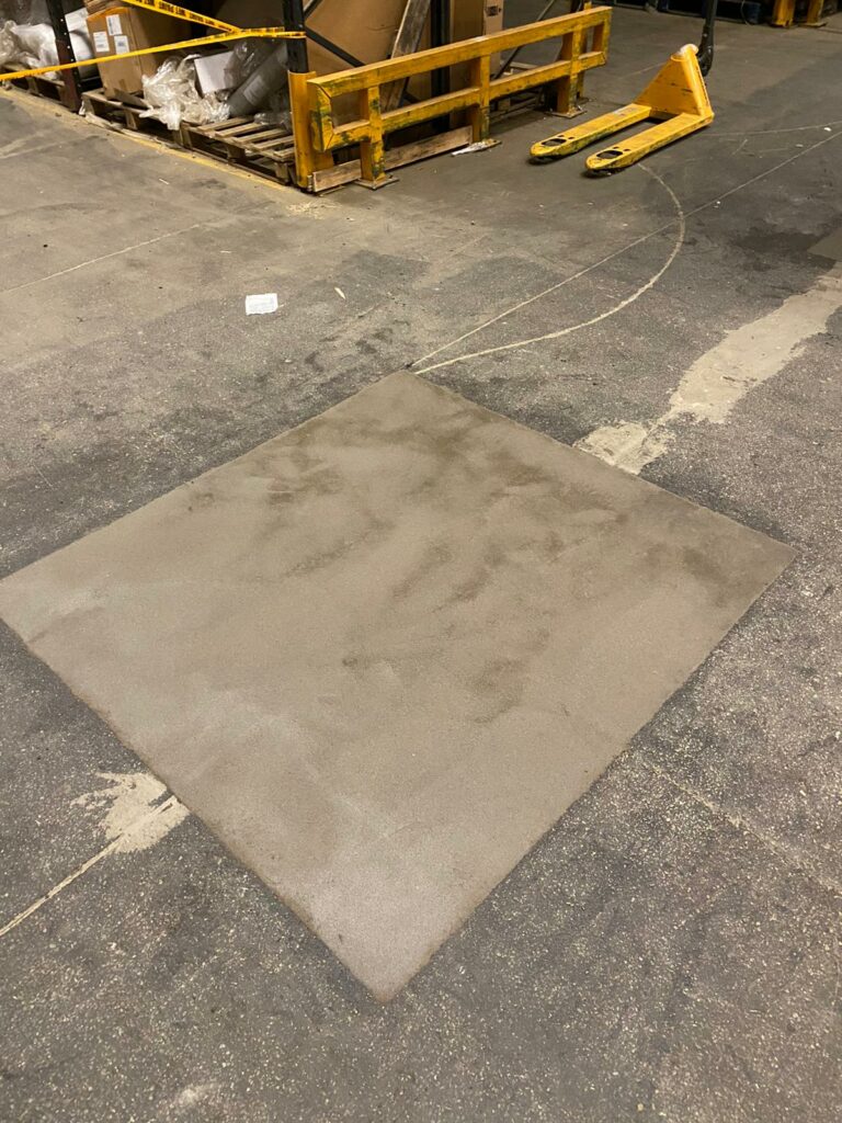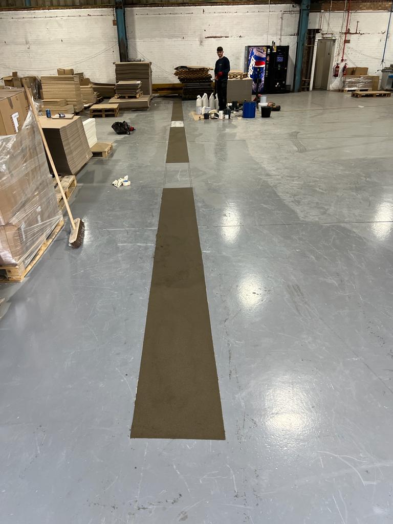 The picture above shows a floor that was heavily contaminated with adhesives from a previous occupant. Impact first prepared the slab using high speed, low dust diamond grinding, which revealed that the slab had been damaged extensively. Repairs were carried out, in this case using epoxy resin flooring repair mortar, prior to the installation of a polyurethane resin screed.