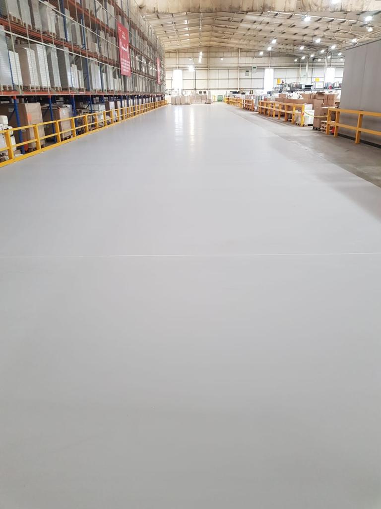 Some people confuse this with paint, however, it’s much thicker (typically 2-3mm) meaning it’s more durable and will last a lot longer saving you money in the long-run. If the floor underneath has had previous repairs, it removes the imperfections in the concrete floor giving a showroom standard finish. This type of resin flooring system is typically applied to areas that need to be very hard wearing, but also very aesthetically pleasing for any visitors. These flow applied flooring systems are designed for the more hard wearing duties in manufacturing environments.