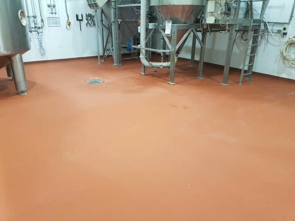 Polyurethane and epoxy resin screed (to withstand steam cleaning or for food environments)